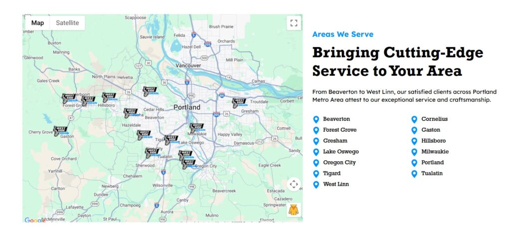 Be specific about the neighborhoods you cover in that city. Don’t just say “We serve Austin.” Say something like “We provide roofing services throughout Austin, including downtown, South Congress, East Austin, and North Loop neighborhoods.”